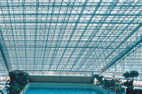 由多根桿件按照一定的網(wǎng)格形式通過節(jié)點(diǎn)連結(jié)而成的空間結(jié)構(gòu)。具有空間受力、重量輕、剛度大、抗震性能好等優(yōu)點(diǎn);可用作體育館、 影劇院、展覽廳、候車廳、體育場(chǎng)看臺(tái)雨篷、飛機(jī)庫、雙向大柱 網(wǎng)架結(jié)構(gòu)距車間等建筑的屋蓋。缺點(diǎn)是匯交于節(jié)點(diǎn)上的桿件數(shù)量較多,制作安裝較平面結(jié)構(gòu)復(fù)雜。